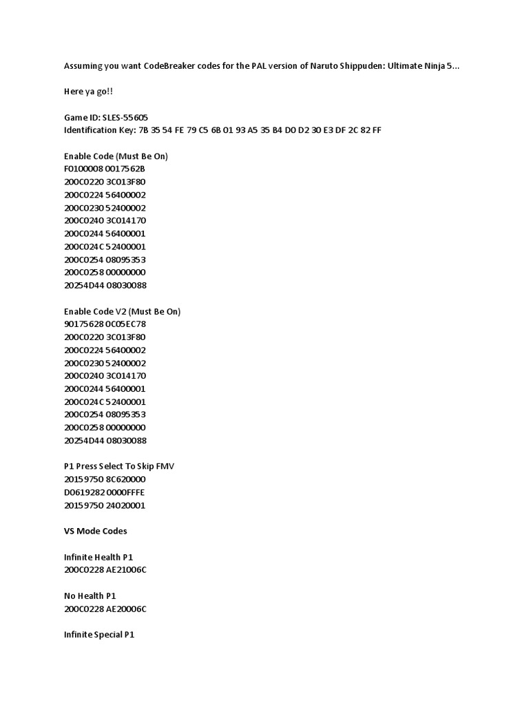 Naruto Shippuden Ultimate Ninja 5 Pdf Video Game Gameplay Gaming from imgv2-2-f.scribdassets.com At the main menu do the . Berikut cheat naruto ultimate ninja 5 untuk ps2 yang bisa digunakan saat bermain ada karakter sasuke hingga deidara. Who are the characters in naruto ultimate ninja 4? To play as stronger kyubi forms of certain characters, first unlock each character in the game (including the 4th . To unlock byakugan hinata, you . To unlock the secondary form of all the characters, just beat the story mode. Naruto ultimate ninja 5 cheats ps2 to unlock all characters. Unlock narutimate difficulty · easy 100,000 yen and bonus characters · sasuke rpg mode · secondary form of characters · all narutimate hero 3 characters and 100,000 .